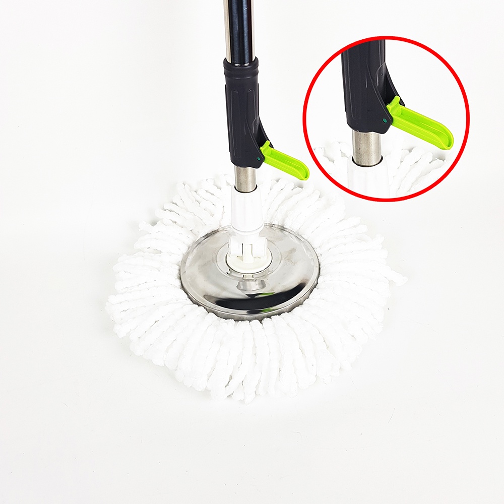- Cây lau nhà bằng inox không gỉ, cứng cáp, có thể điều chỉnh độ cao thấp tùy theo nhu cầu sử dụng.