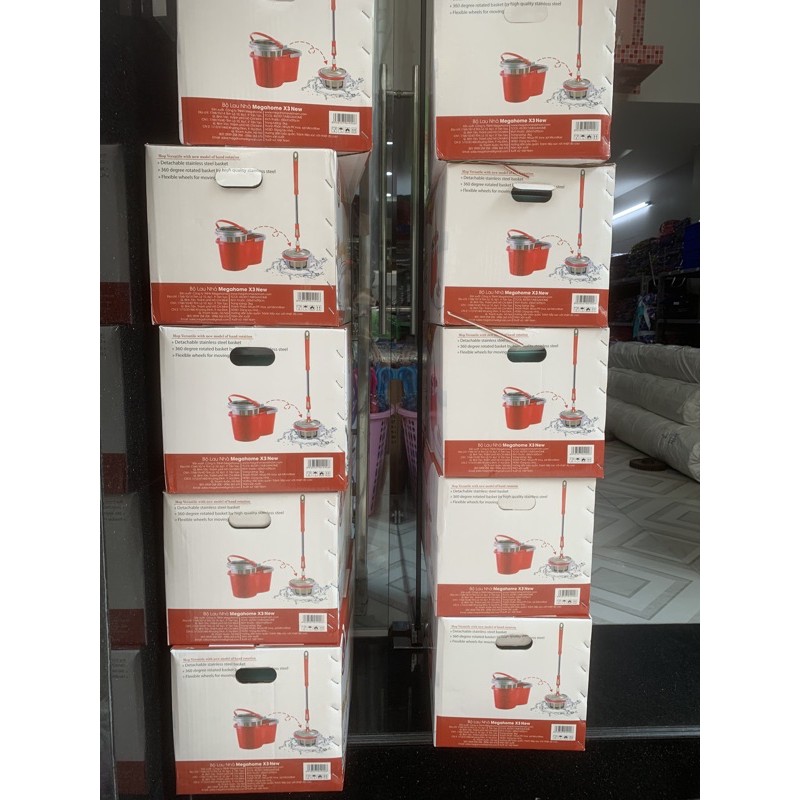 Nhà cửa & Đời sống > Dụng cụ chăm sóc nhà cửa > Cây lau nhà || CÂY LAU NHÀ MEGAHOME X3 NEW (Lồng + Mâm Inox) (Thùng lau nhà xoay 360 độ)Còn hàng