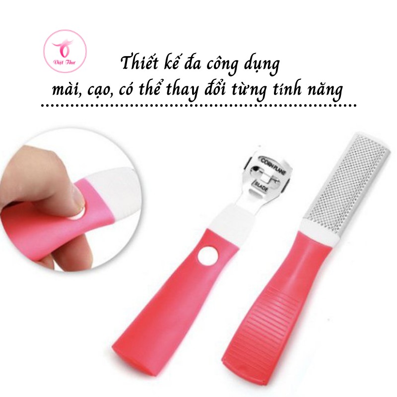 - Cây chà gót chân có thiết kế cực thông minh và sáng tạo, gồm 10 lưỡi dao bào miễn phí, mục đích chính là bào đi các lớp da dày thành từng lớp mỏng, và dần dần hết sạch.