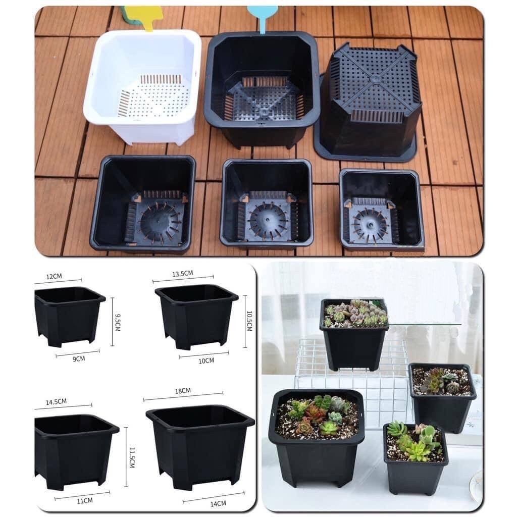 Chậu chuyên dùng trồng các loại cây nhỏ như sen đá, xương rồng, cây nắp ấm, bắt mồi, cây thủy sinh... hoặc dùng để giâm cành các loại cây cảnh, và có thể tái sử dụng được nhiều lần. Phù hợp trồng cây tất cả các dạng thời tiết, không sợ cây bị nóng úng rễ.Chất liệu: Được làm từ nhựa PP dày cao cấp, độ bền cao, chịu nhiệt tốt, lỗ thoát nước chuẩn đẹp.