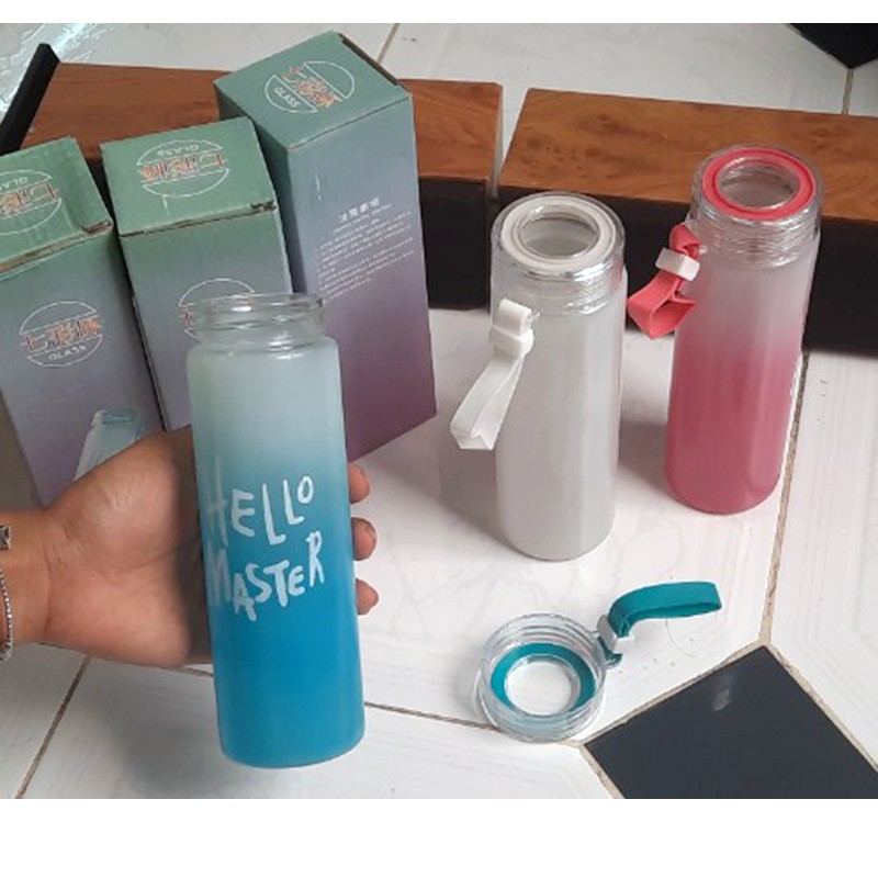 Chai bình thủy tinh Hello Master 350 - 450ml- Bình đựng nước uống, bình mang đi học, đi chơi, đi làm, đi tập thể dục thể thao.