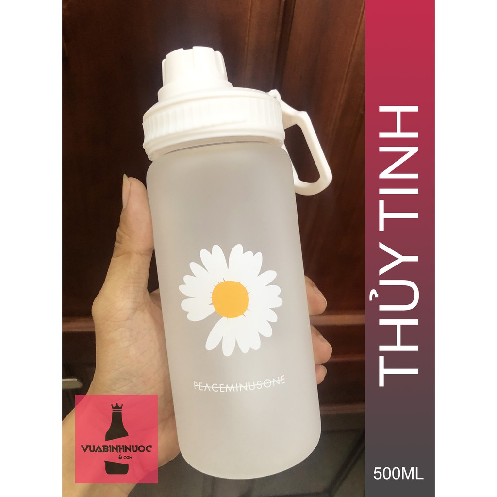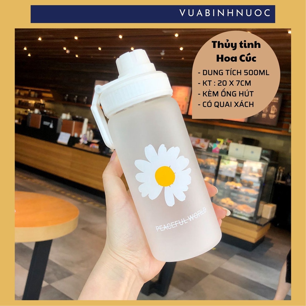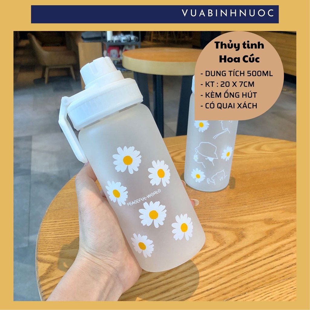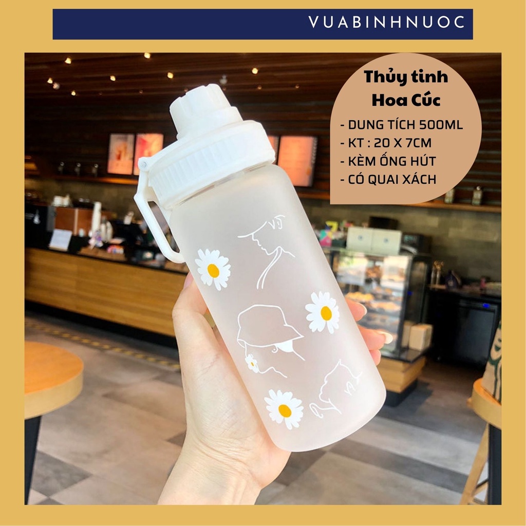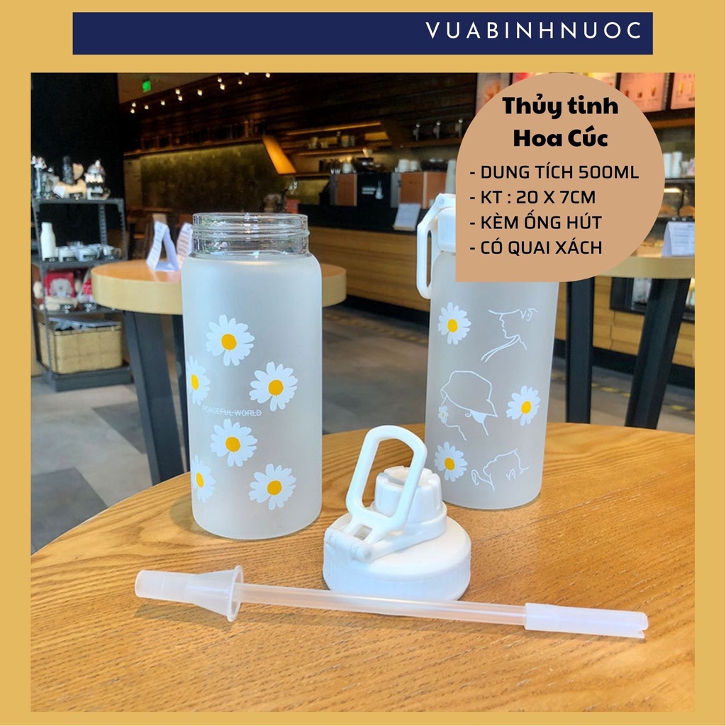 Nhà cửa & Đời sống > Bộ đồ bàn ăn > Bình nước & phụ kiện || Chai bình thủy tinh Hoa Cúc 500ml + ống hút chuyên dụngCòn hàng