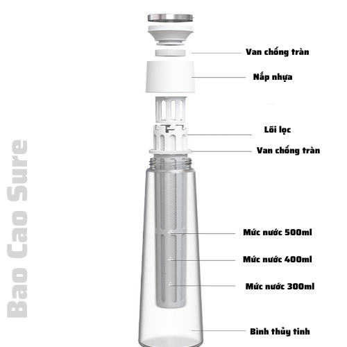 Giới thiệu Chai Cold Brew pha cà phê Timemore,bình ủ ngâm lạnh cafe,detox cao cấp tích hợp van chống tràn hiện đại dung tích 600ml