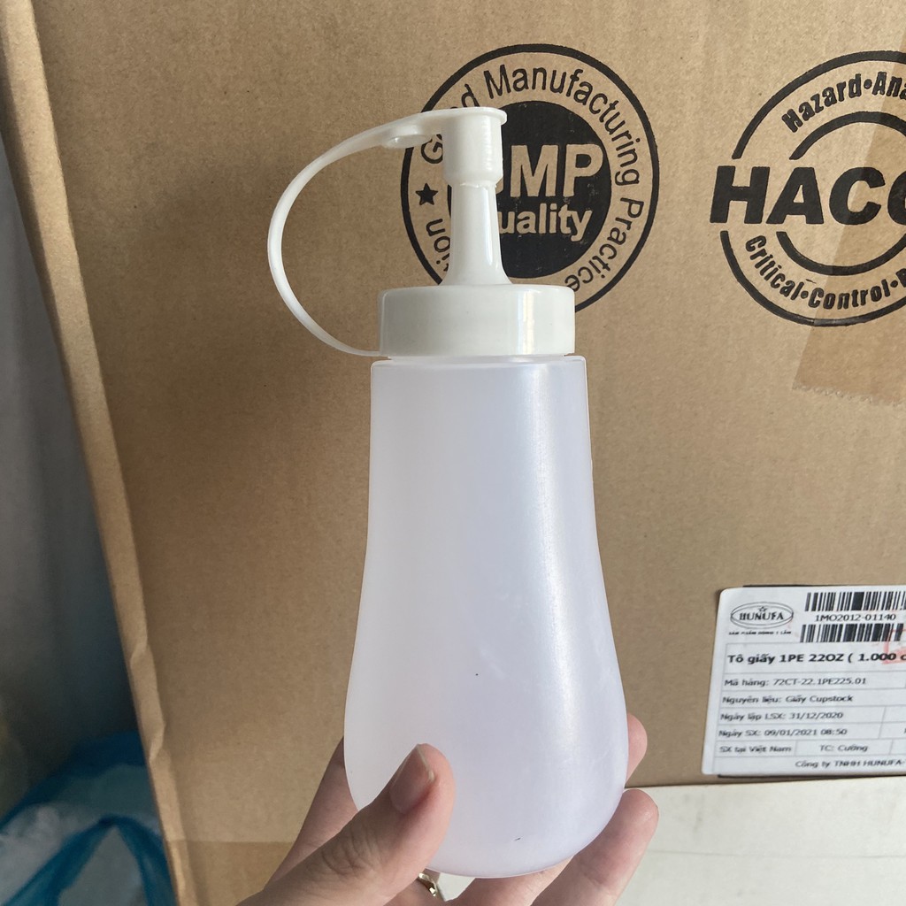 Chai đựng dầu ăn 250ml, nắp trắng Bottle plastic Bình nhựa xịt tương ớt, syrup, lọ sốt cà, sữa đặc có nắp, vòi dài