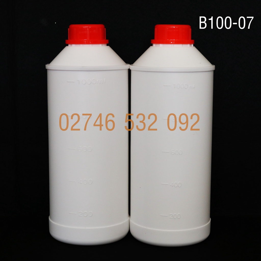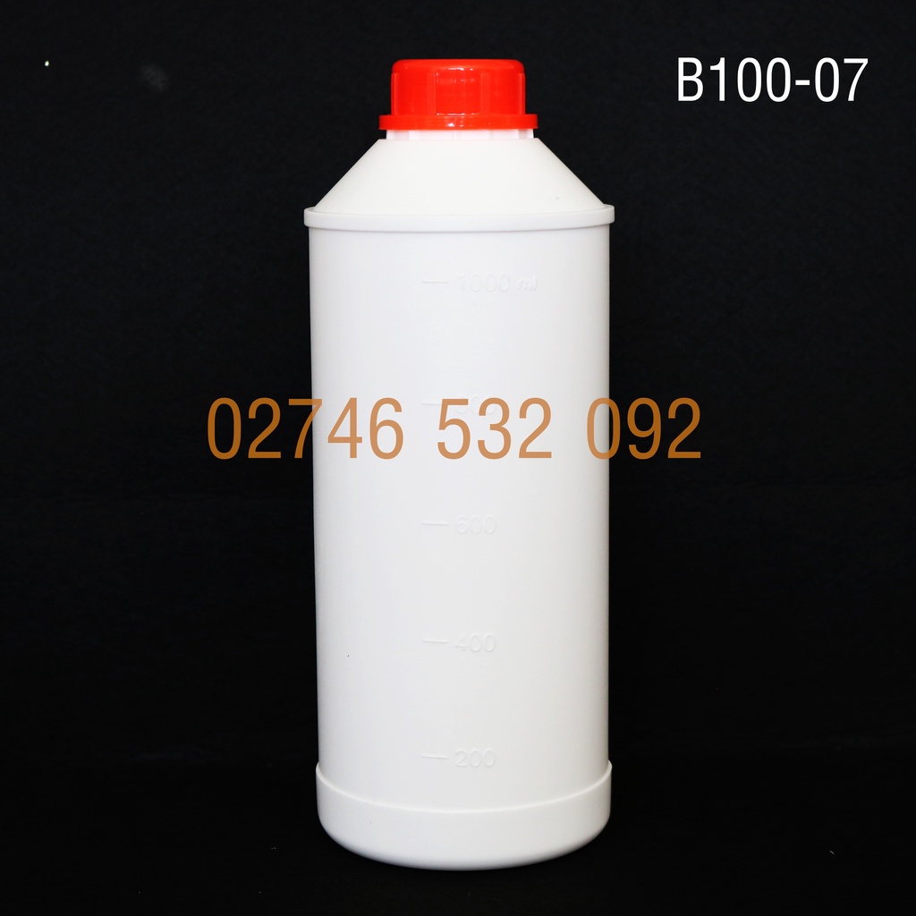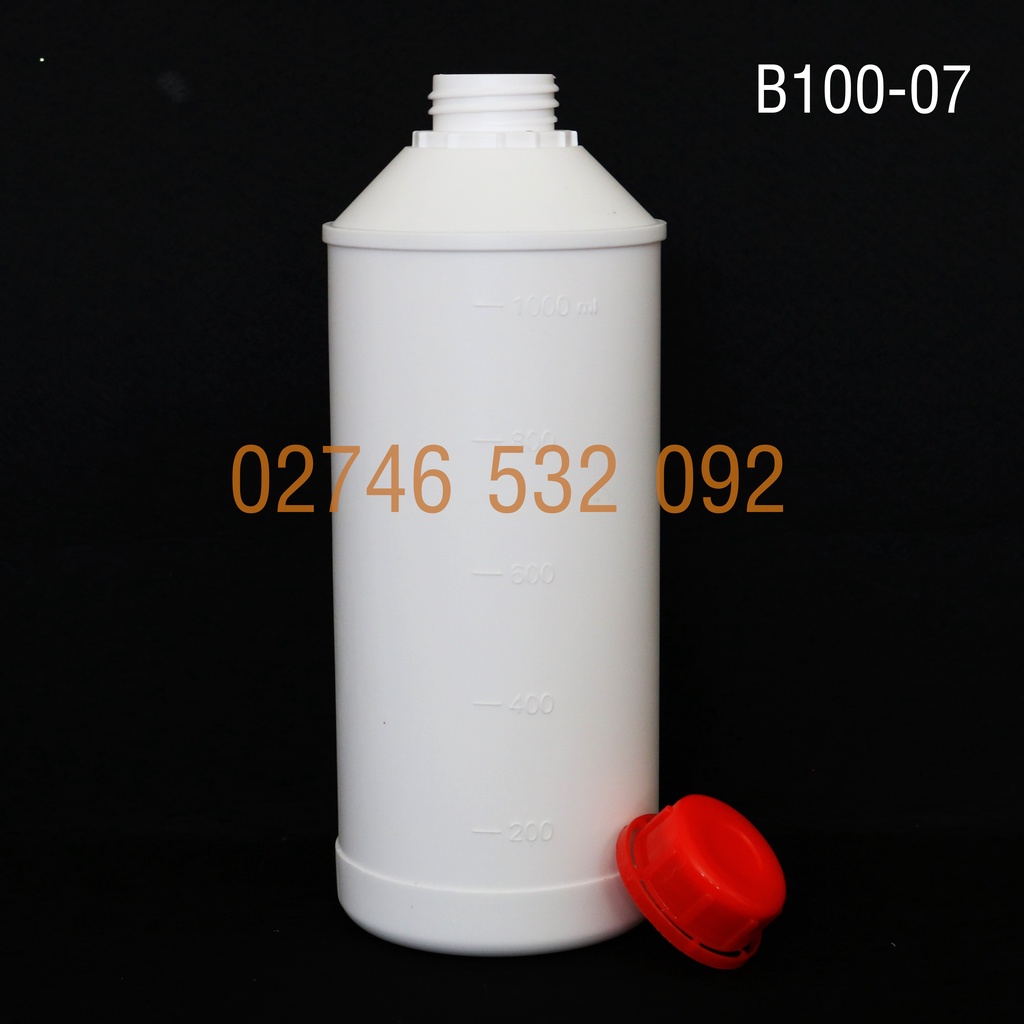 Giới thiệu Chai Nhựa Trắng Đục HPDE B100-07 - 1000mL Nắp Galenti Khóa Màu Đỏ Siêu Xinh - Có Vạch Định Mức 1000ml