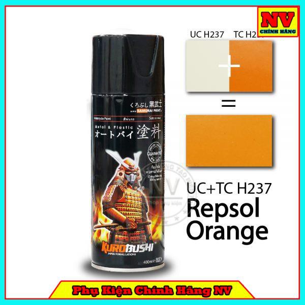 - Sơn xịt màu Cam Repsol - UC + TCH237 nằm trong bảng màu Hệ thống màu 2 lớp của Samurai, những màu nằm trong nhóm màu này cần sử dụng chung với nhau mới lên được màu chuẩn và đẹp như hình.