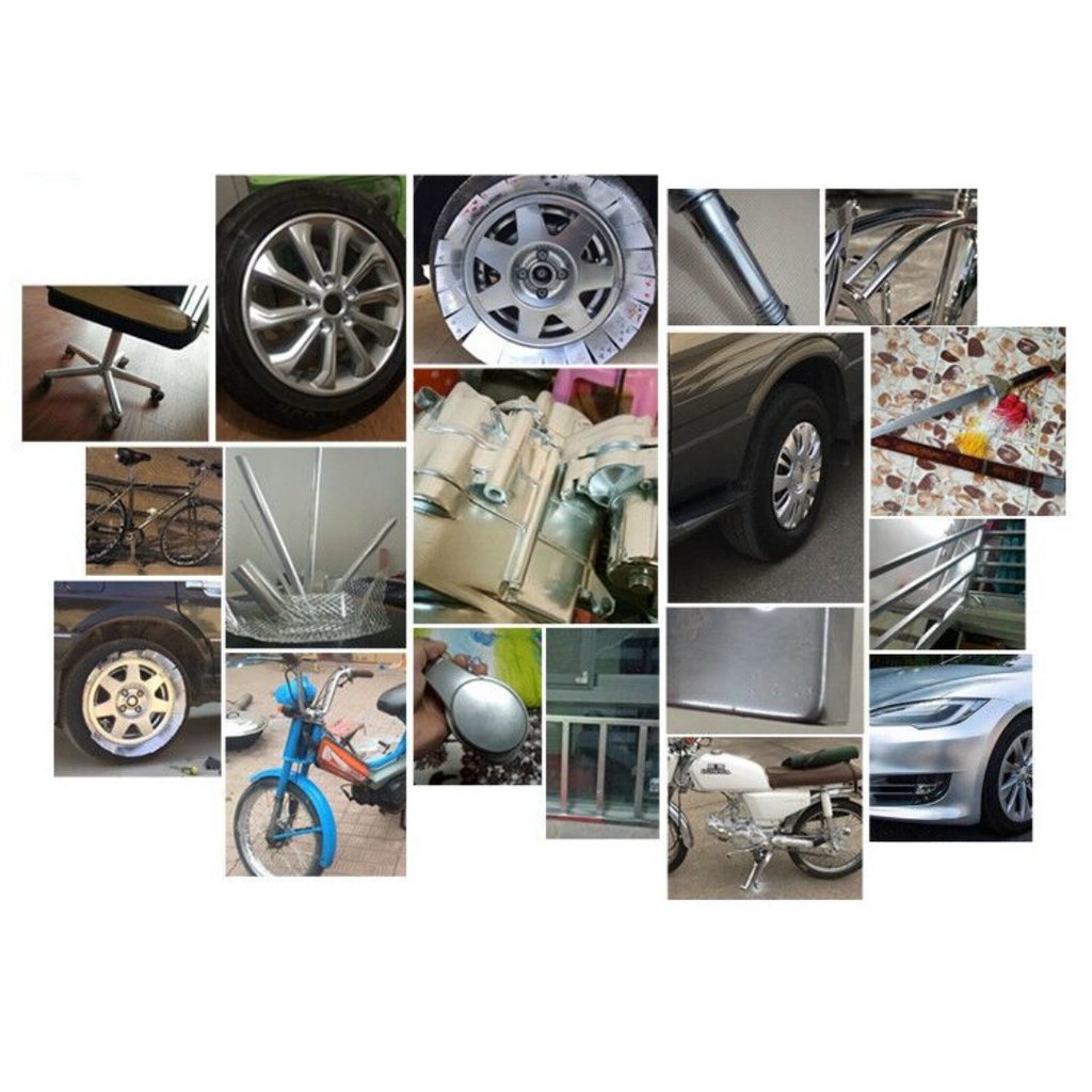 Chai sơn xịt mạ Chrome 350ml màu inox crom bạc giá tốt dùng cho kim loại, ô tô, xe máy bảo vệ bệ mặt kim loại- Sơn mạ chrome hiệu ứng màu inox cao cấp, tinh tế và nổi bật. Lớp sơn bóng mịn, màng sơn khô nhanh, độ bóng cao bám trên mọi bề mặt thích hợp đồ nội thất, đồ gia dụng, xe oto, xe máy,… Sản phẩm sau khi sơn nổi bật, độc đáo và thu hút hơn