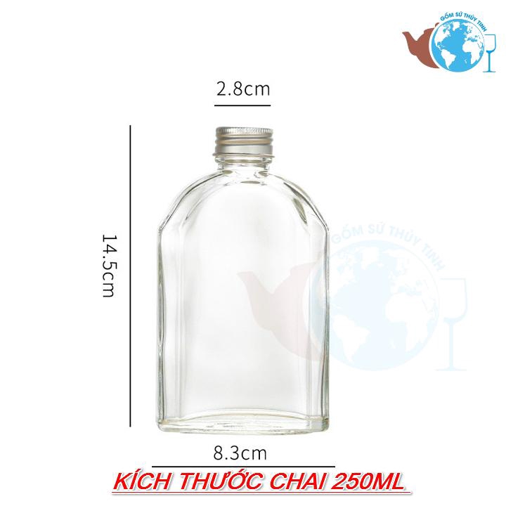 Chai thủy tinh 250ml kiểu dáng dẹp nắp nhômThông tin sản phẩm"