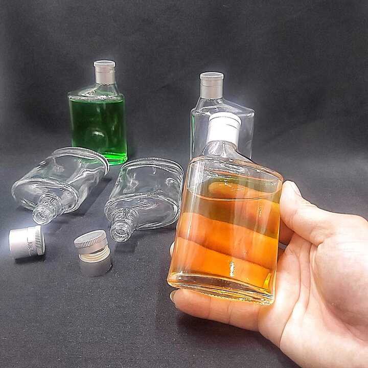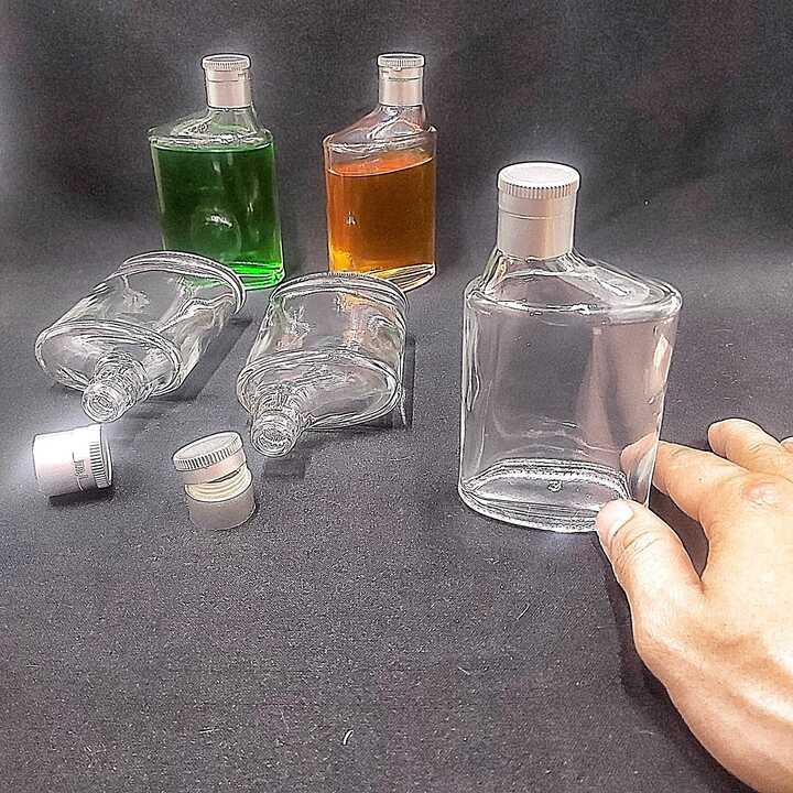 Giới thiệu Chai Thủy Tinh Nhỏ Bỏ Túi 100ML (1 chai) mẫu Dẹt kiểu SỐ 6 nắp nhựa bạc - Chai đựng rượu Mini độc đáo