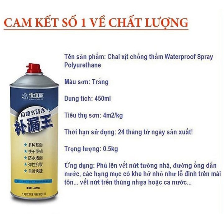 - Tên sản phẩm: Chai xịt chống thấm Waterproof Spray Polyurethane