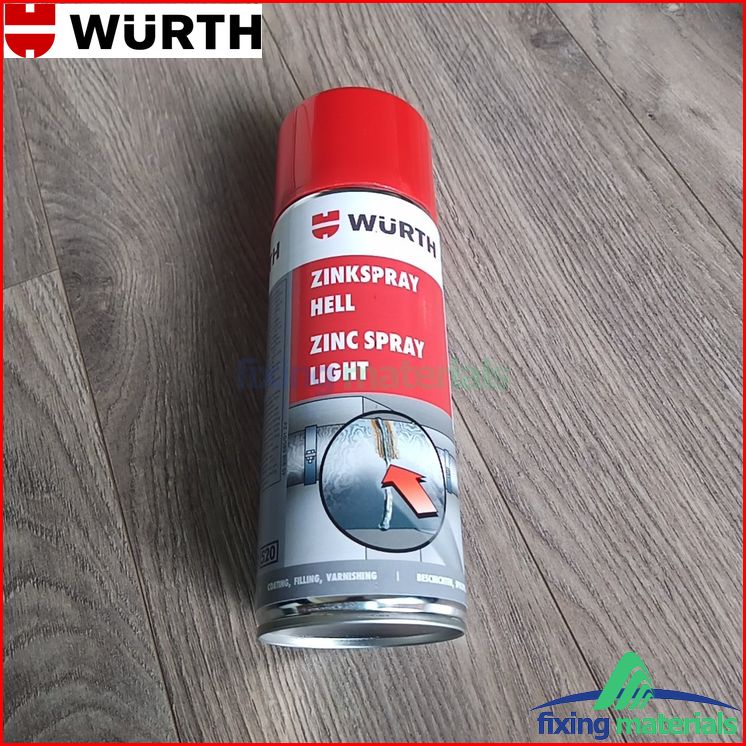 Chai Xịt Mạ Kẽm Chống Gỉ, Chịu Nhiệt Cao Wurth Zinc Spray 400ml+ Là dạng sơn chống gỉ chịu nhiệt độ cao tới 240°C với thành phần 96.5% kẽm nguyên chất. Bảo vệ chống rỉ, kháng muối, chống ăn mòn và khả năng bám dính tuyệt vời trên bề mặt kim loại trần.