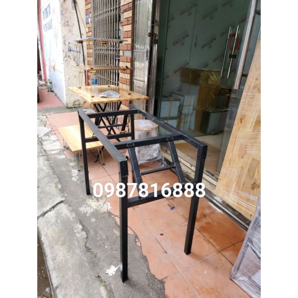 Chân bàn gấp gọn . Thích hợp cho lắp mặt bàn dài 1m2 rộng 50cm.Chân bàn cao 73cm , dài 115cm, rộng 45 cm.