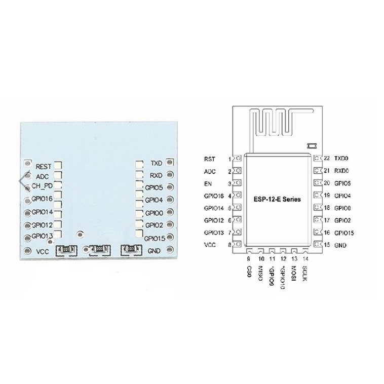 - Đây là loại đế ra chân cho module ESP8266 phiên bản dán, có thể dùng với ESP-07 , ESP-08, ESP-012.- Giúp việc kết nối mạch thu phát wifi ESP8266 trở nên dễ dàng hơn