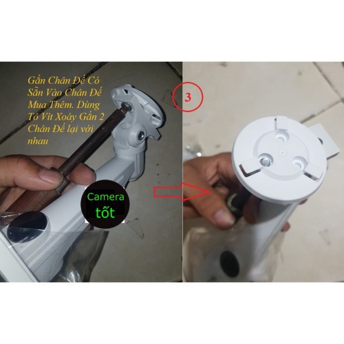 Chân đế kèm theo cam hơi bé và lắp k chắc chắn: