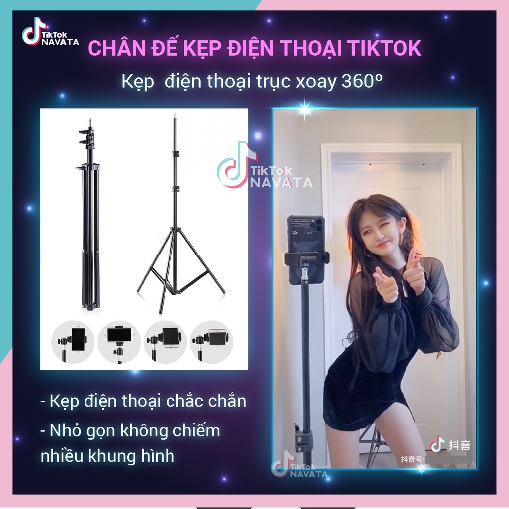 Nhưng chỉ là kẹp điện thoại để giữ điện thoại thôi là chưa đủ, Tripod (Chân đỡ điện thoại) còn phải đẹp nữa. Thấu hiểu được thị yếu này của khách hàng Navata Store đã đặt hàng riêng tại xưởng Trung Quốc chân đế của các TikToker Douyin sử dụng để quay TikTok.