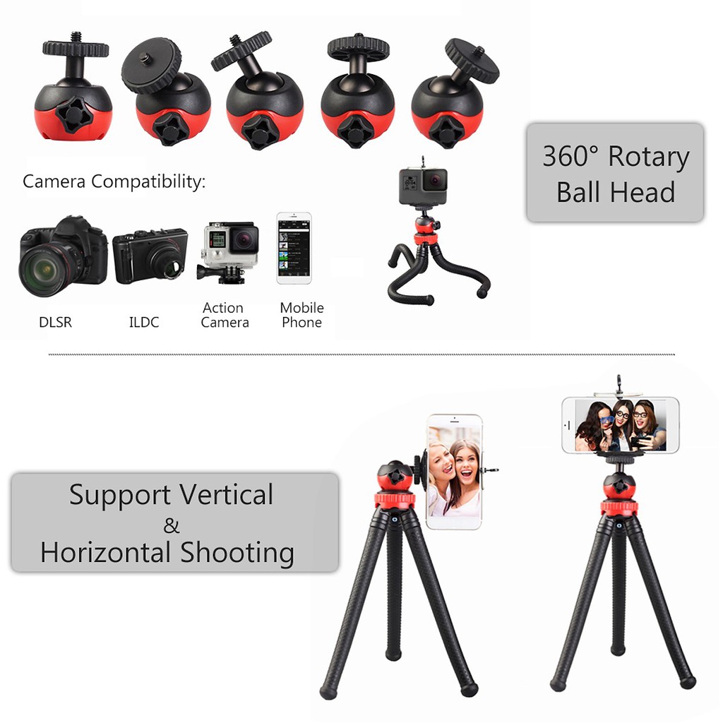 Lời đầu tiên Shop #ĐàiLoanStore xin chân thành cảm ơn quý khách hàng đã quan tâm đến sản phẩm của shop.🔹Tên Sản phẩm: Chân đế máy ảnh, chân đế điện thoại Tripod Ballhead Mini Octopus Flexible kèm kẹp điện thoại