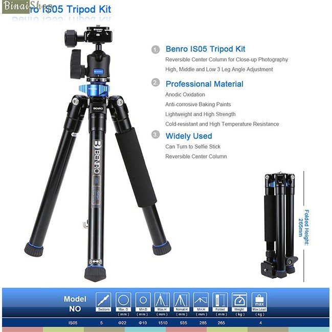 Cameras & Flycam > Phụ kiện máy ảnh > Chân máy ảnh || Chân đế tripod cho máy ảnh chất lượng cao Benro IS05Còn hàng