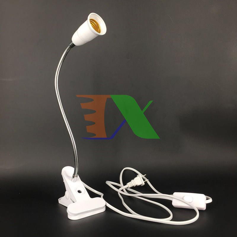 Chân đèn để bàn kẹp TCD-E27, Chân đèn led đui xoáy, Kèm Phích cắm Dây Công tắc