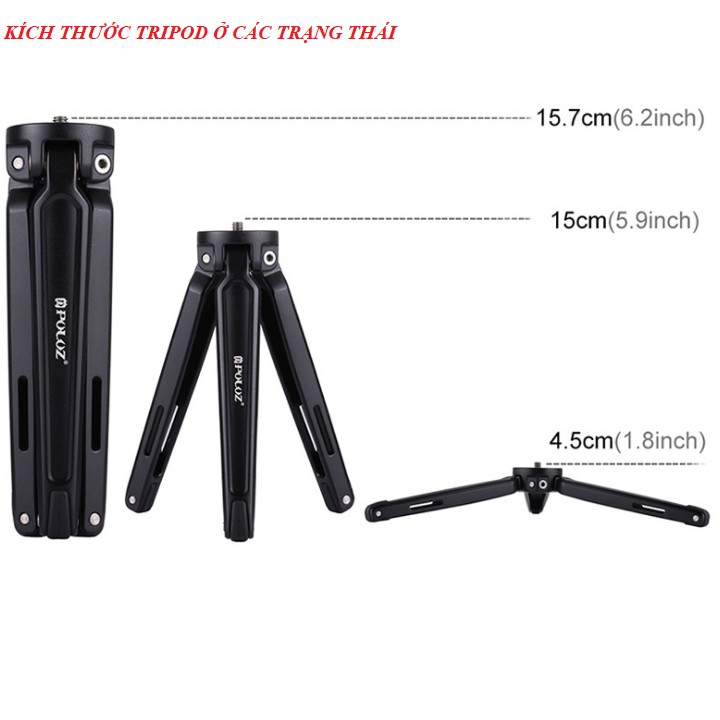 - Tripop PULUZ có thể thay đổi chiều cao tùy ý để phù hợp với nhu cầu sử dụng