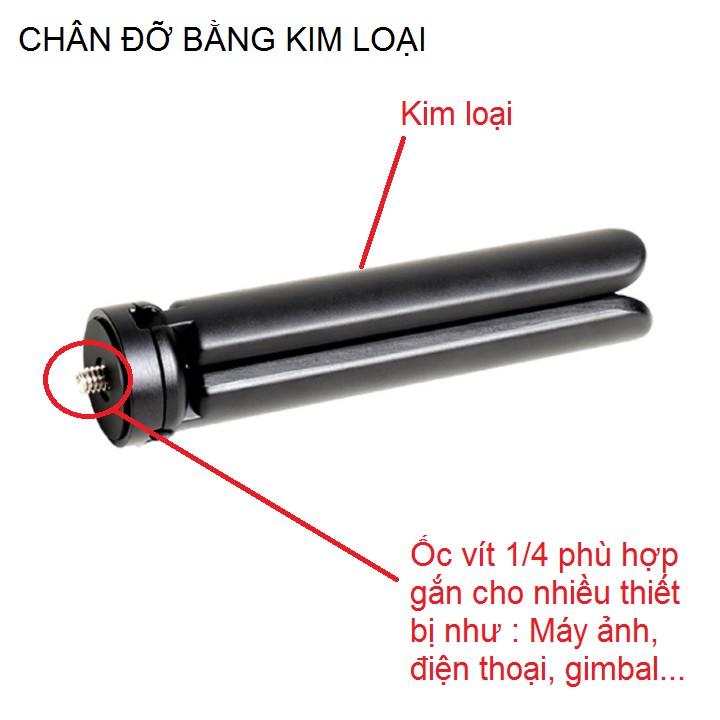 - Tripod có đệm cao su ở dưới chân tăng ma sát với nền đất