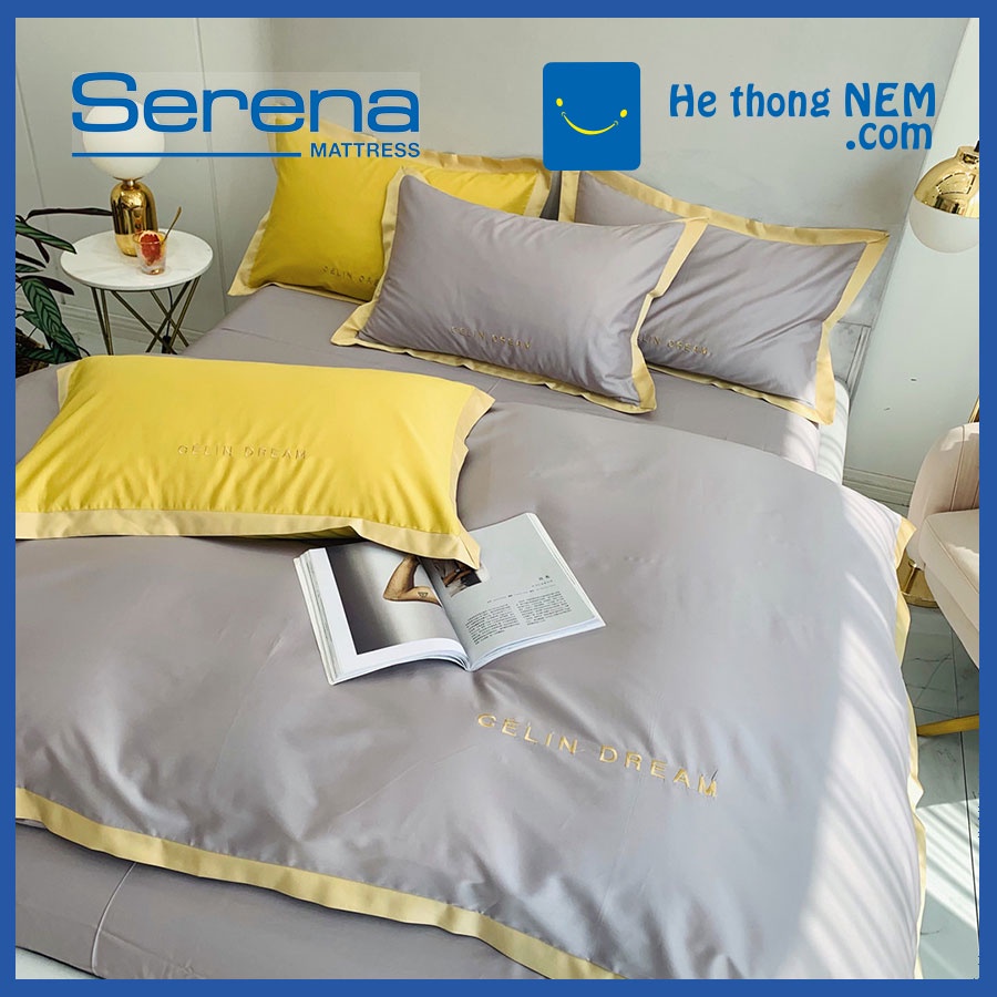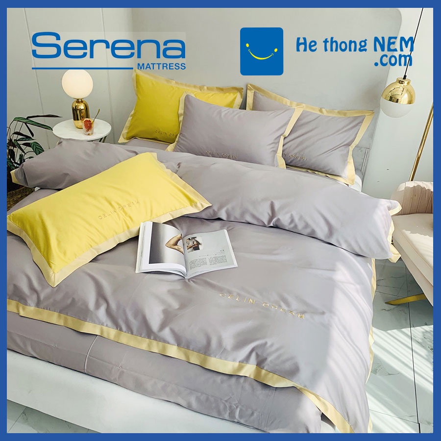 Bộ Chăn Ga Gối 5 Món Lụa Pháp SERENA Chăn Ga Gối Đệm Drap Trải Giường Cao Cấp - Hệ Thống Nệm