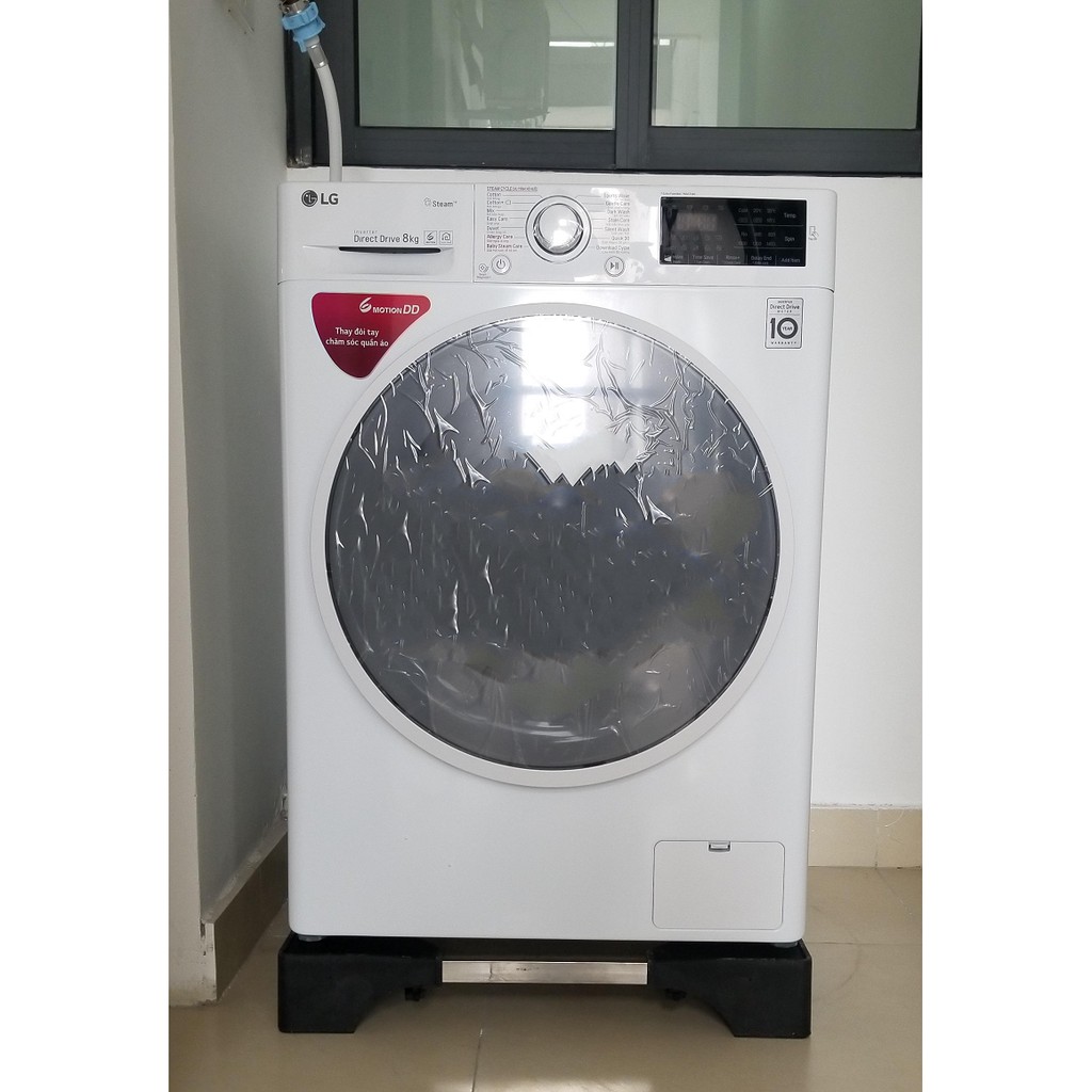 - Giá đỡ máy giặt được thiết kế 4 thanh ngang inox cùng 4 trụ đỡ lớn bằng nhựa đúc bê tông ở 4 góc cho khả năng chịu lực lớn lên đến 400 kg.