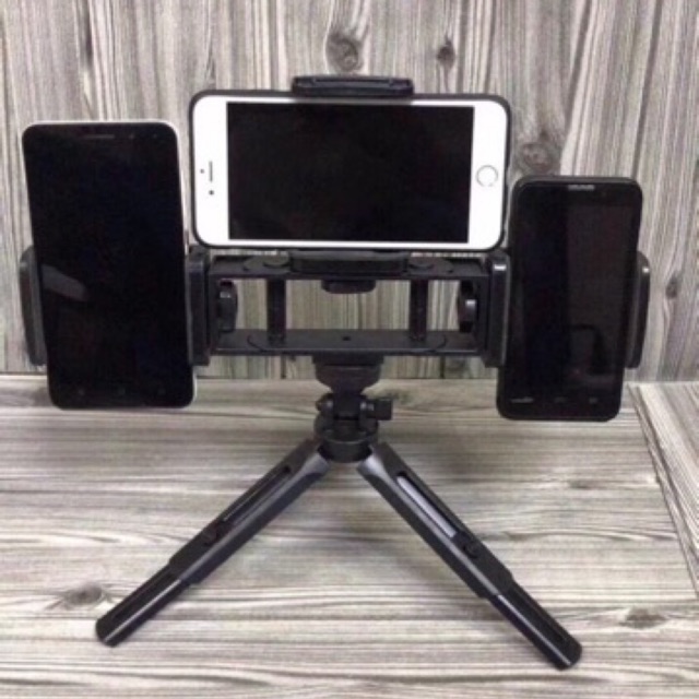 Chân Kẹp Điện Thoại Tripod Mini 3 chân (Kèm Đầu kẹp) kẹp 3 điện thoại livestream