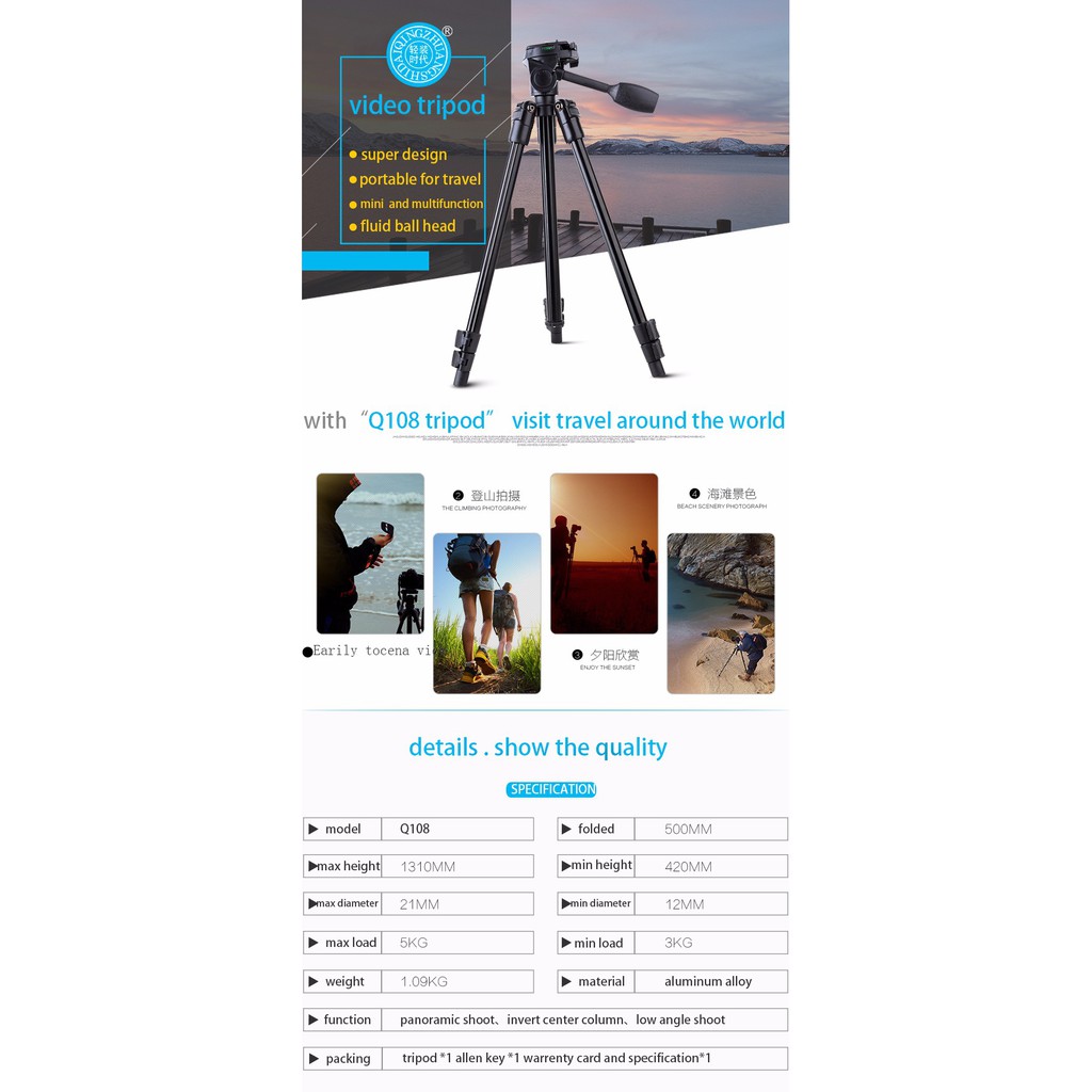 - Cân nặng: 1.09kgChân máy ảnh Beike Q-108