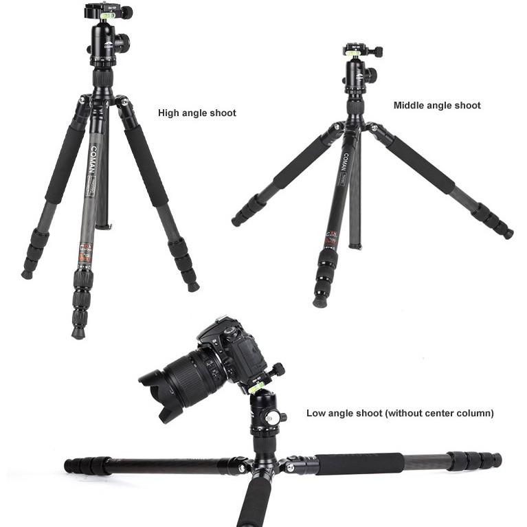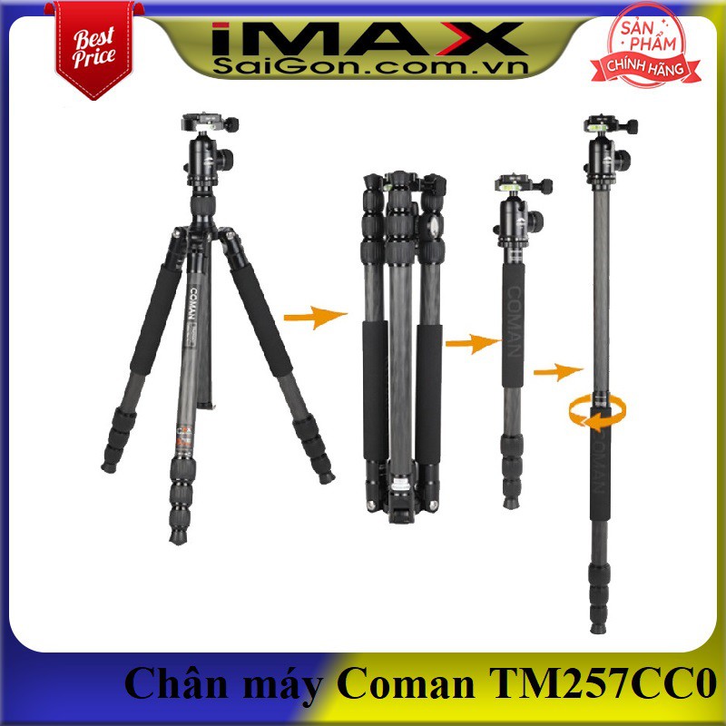 COMAN TM257CC0, TRIPOD SỢI CARBON Chân máyCOMAN của Dòng EMU là giá đỡ cho chất lượng và chức năng cao nhất. Coman TM257CC0 là người bạn đồng hành hoàn hảo khi đi du lịch vì nó có chân có thể gập lại 180 độ, kích thước gói hàng tương đối nhỏ và trọng lượng chỉ 1480g. Nó có một mức tinh thần được xây dựng sẵn để máy ảnh dễ dàng căn chỉnh.