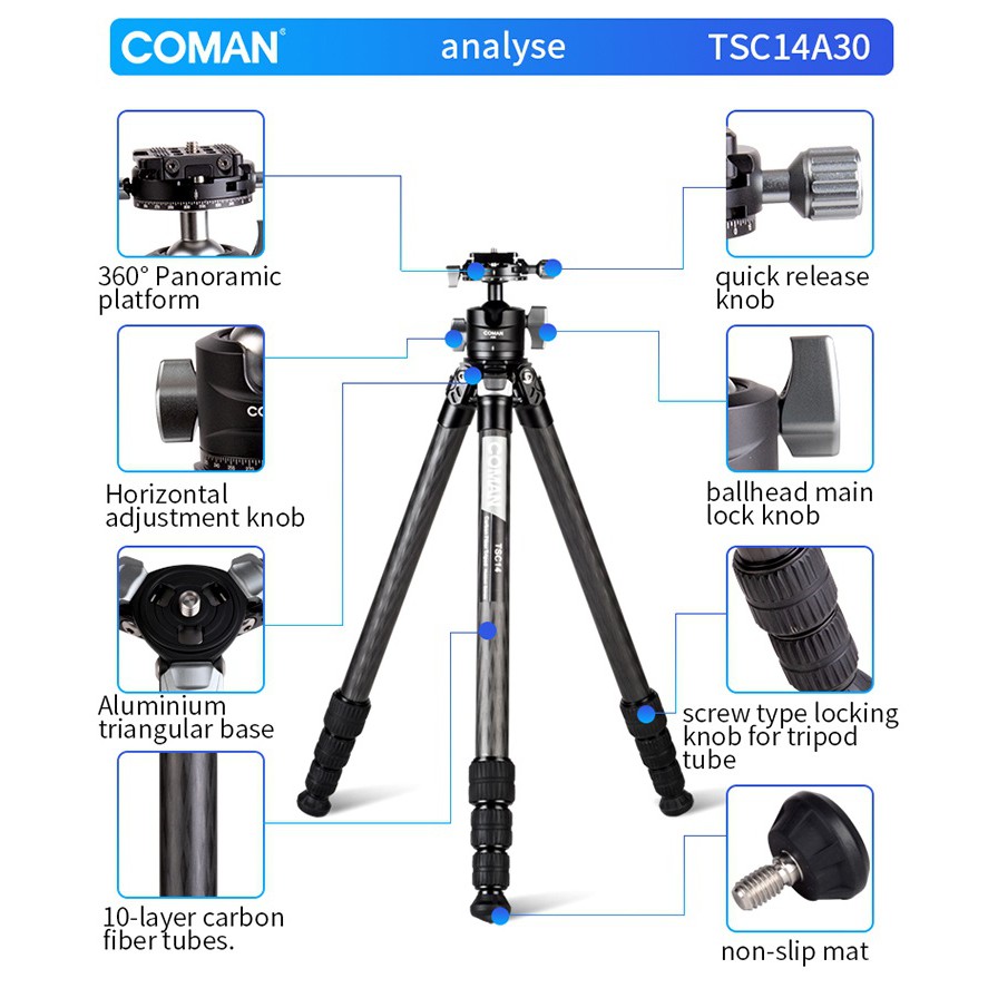 Giới thiệu Chân máy ảnh Coman TSC14A30, Carbon
