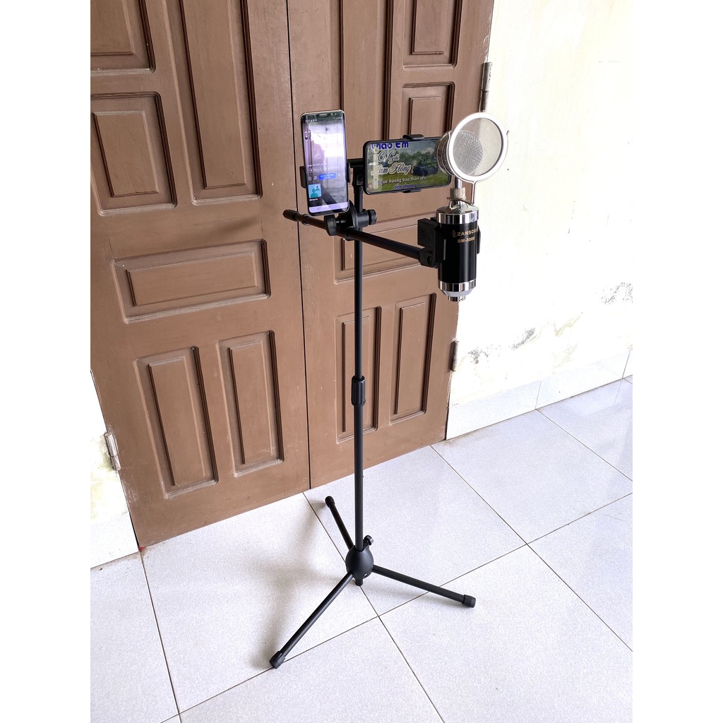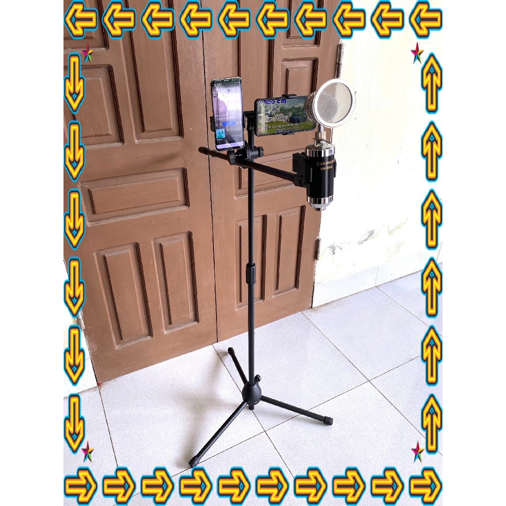 Chân Mic Đứng Kèm Gía Đỡ 2 Điện Thoại Dùng Để Thu Âm Hoặc Phát Biểu , Chân Mic Cao 1.8m Có Thể Thay Đổi Chiều Cao Tùy Ý