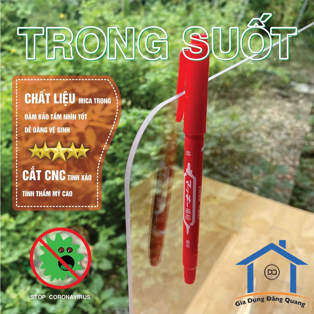 - Chất liệu mica 3mm trong suốt cứng cáp, an toàn, dễ sử dụng, không vỡ như kính