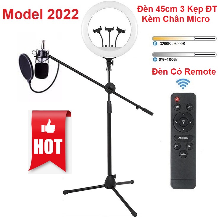⚜️ Chân Micro Kiêm Đèn Livestream, Size 54cm - Size 45 - Size 36 - Size 33 - Chuyên Bán Hàng - Chụp Ảnh - Hát Livestream Sản Phẩm Mới Nhất Model 2022⚜️ ( BỘ ĐÈN GỒM CÓ CẢ CHÂN CẢ KẸP ĐIỆN THOẠI DỀN 45CM VÀ 54CM CÓ REMOTE )
