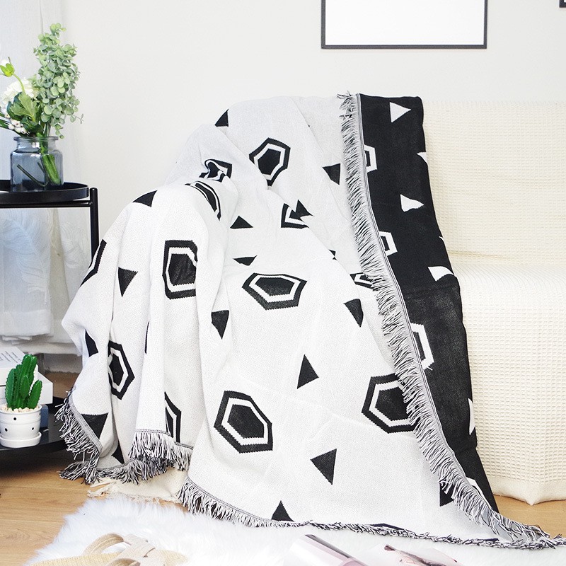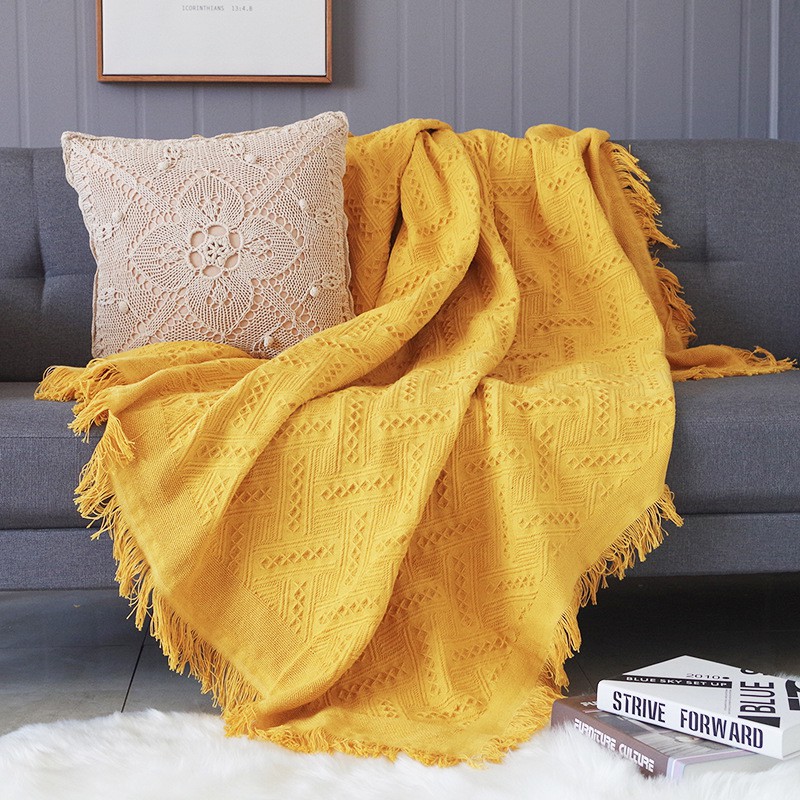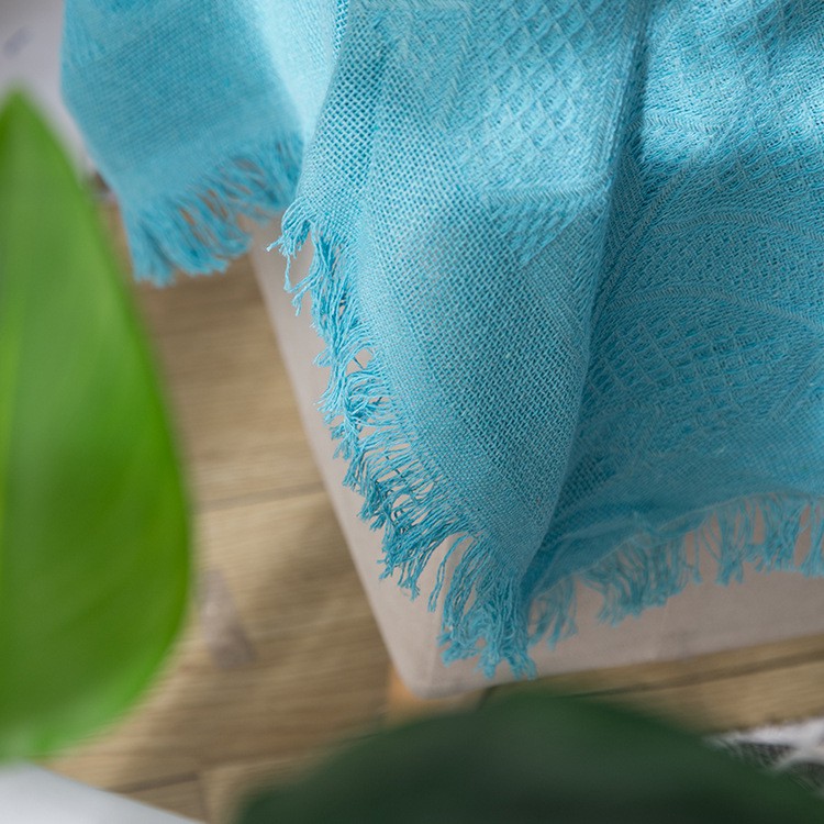 Chăn Thảm Phủ Ghế Sofa Đan Len Tua Rua Màu Trơn Phong Cách Thổ Cẩm