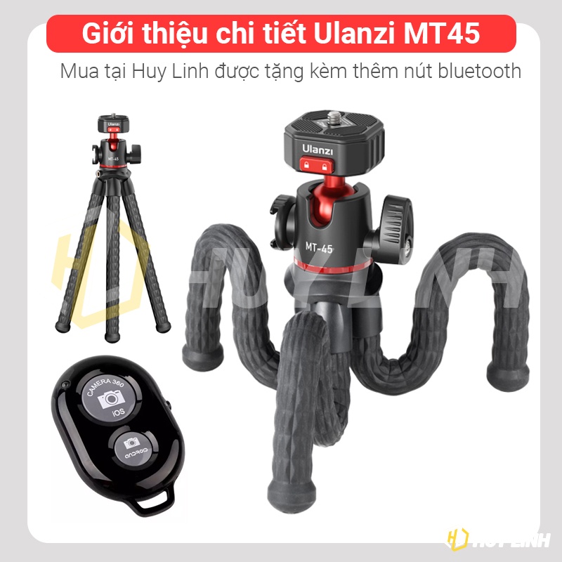 Giới thiệu Chân Tripod Octopus Ulanzi MT-45 Claw Flexible Tripod Cho Điện Thoại/Máy ảnh Mirroless, DSLR - Tích hợp Cold Shoe