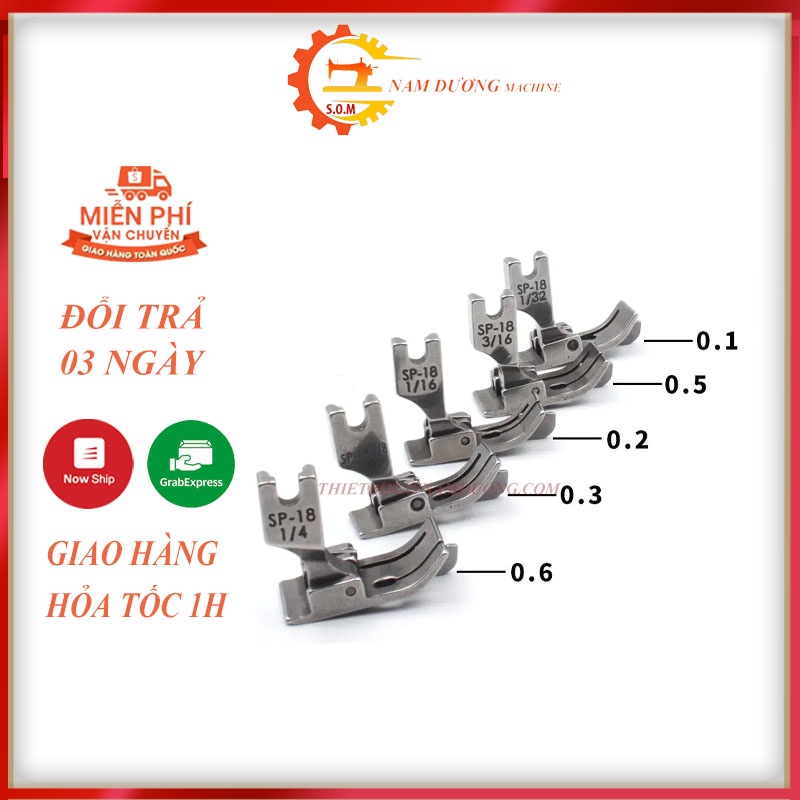 Chân vịt diễu SP18 dùng để diễu đường thẳng canh lề để canh mí so với mép vải mà ko cần phải dùng cữ nam châm.