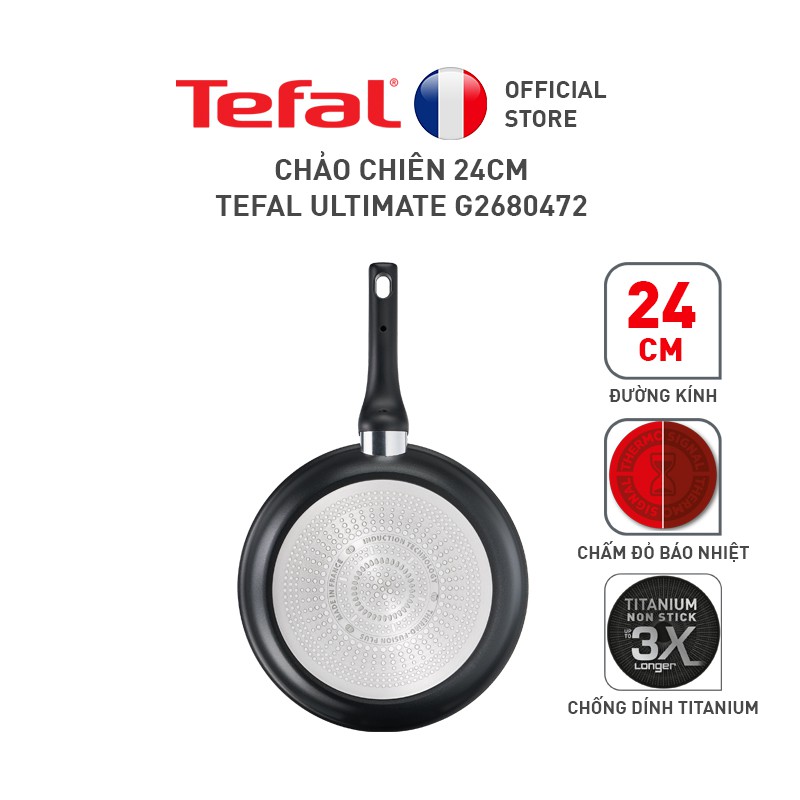 Chảo chiên Tefal Ultimate 24cm- LỚP PHỦ TITANIUM Non-Stick Bền chắc với hơn 48,000 lần chà nhám (tương đương 12 năm sử dụng).