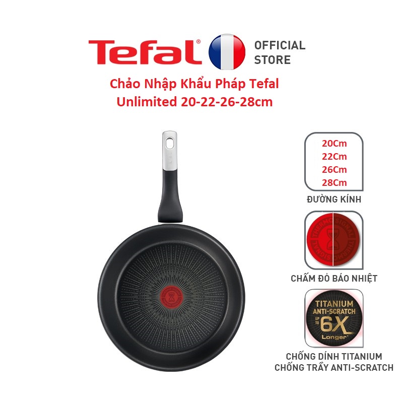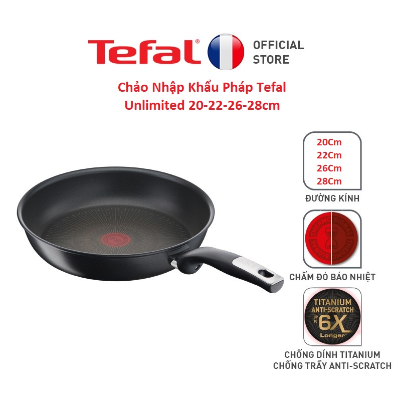 Chảo Pháp Tefal Unlimited 20cm G2550243 - 22cm G2550302 - 26cm G2550502 - 28cm G2550602 -Chính Hãng BH 24 Tháng