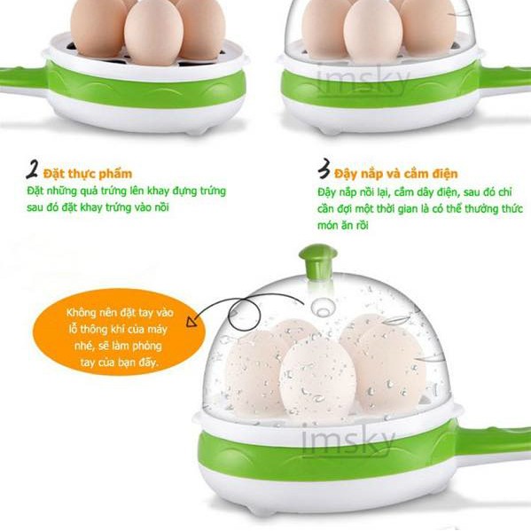 Đây là sản phẩm rất hữu ích nhé. Khi cần hấp trứng, bạn cho khay hấp vào nồi, cho thêm nước, đậy lồng hấp vào rồi cắm điện là xong. Bỏ khay hấp ra, bạn có 1 chiếc chảo chiên trứng bình thường. Là chảo điện các bạn nhé, nên thời gian chế biến rất nhanh nha. Thiết kế nhỏ gọn, phù hợp cả cho những chuyến đi xa.