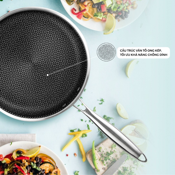 - Cấu trúc vân tổ ong kép, tăng gấp đôi hiệu quả chống dính