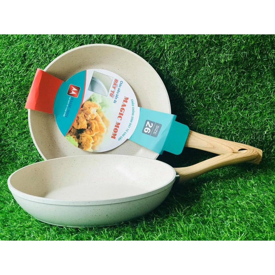 Chảo chống dÍnh cao cấp Chảo đá trắng sâu lòng có nắp đậy size 28 size 26 Magic Mum