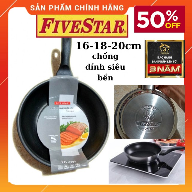 Chảo Chống Dính Inox 3 Đáy Fivestar -16-20-22cm -Dhảo Đun Bếp Từ-Hàng Chính Hãng - Bảo Hành 24 Tháng