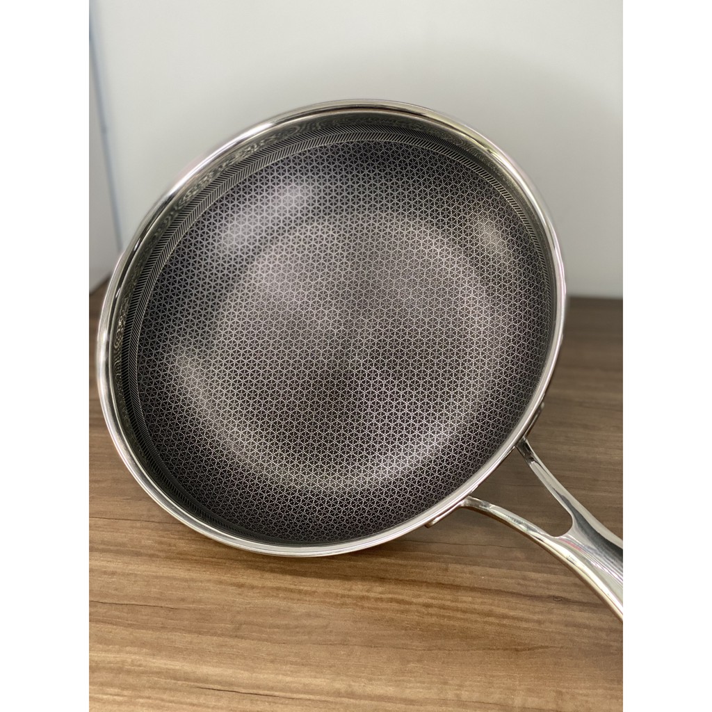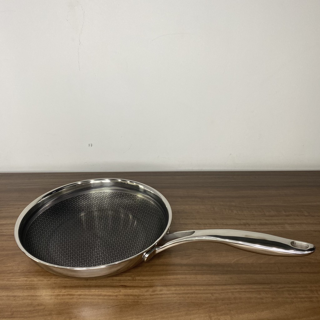Chảo bếp từ inox 304 24cm T&K Blackcube thiết kế lưới tổ ong với tầng inox hình trụ nổi gờ lên trên và lớp chống dính chìm xuống dưới, nhằm hạn chế sự tiếp xúc và ma sát từ các dụng cụ nấu ăn. Bên cạnh đó, công nghệ Daikin giúp cho lớp chống đính được bền hơn, chất lượng hơn, mang đến độ bền rất lớn khi có thể chịu được nhiều lần lực mạnh tác dụng lên.