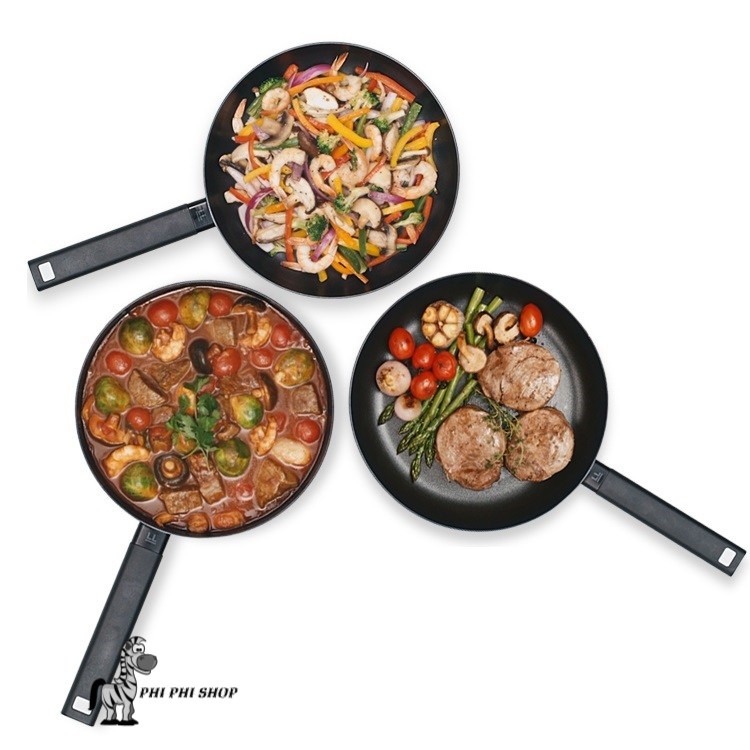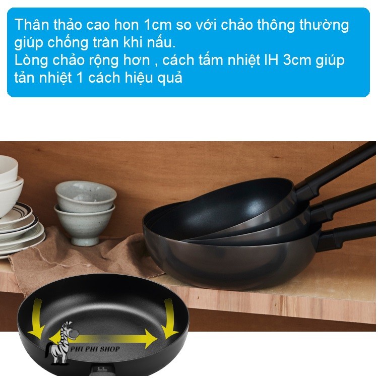 - Kích thước: đường kính chảo 20,24,26,28cm, cao 8cm