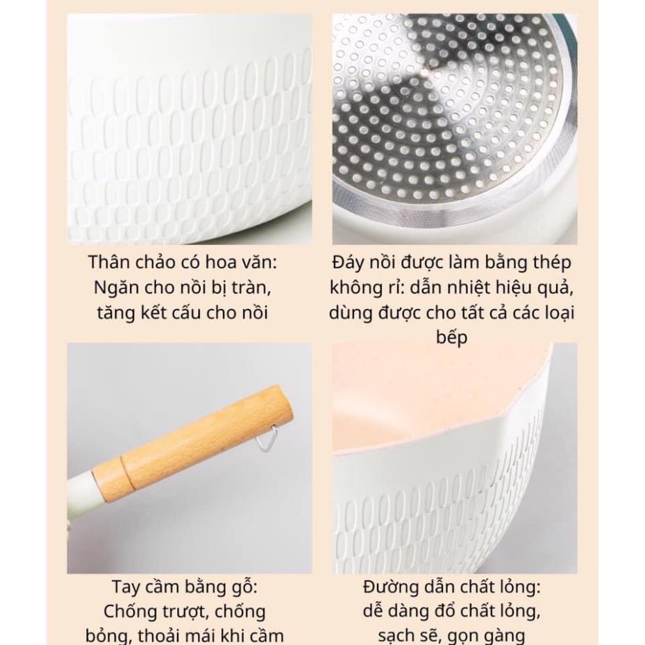 Chảo chống dính sâu lòng,chảo hàn quốc dùng bếp từ lúa mạch cán gỗ chống bỏng