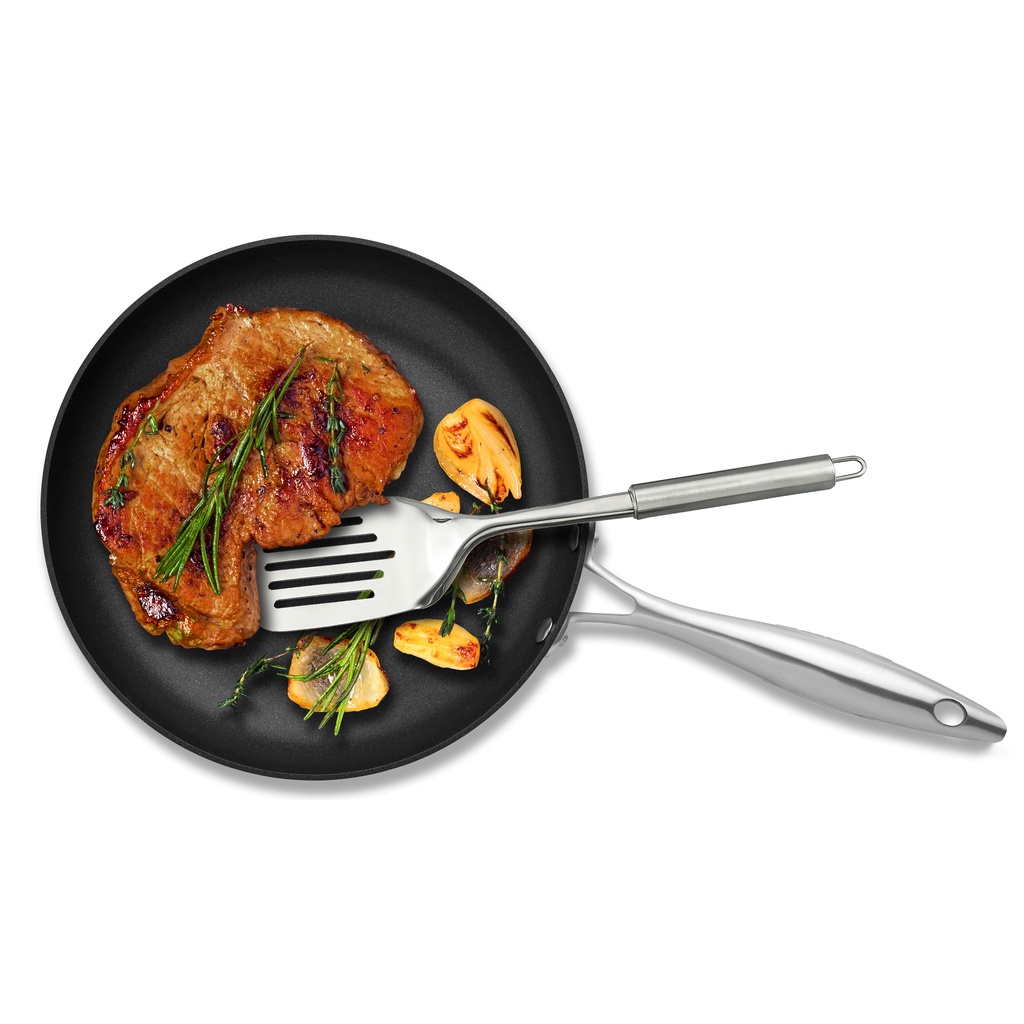Tay cầm bằng inox đặc chống nóng: Chảo chống dính Scanpan CTX được thiết kế tay cầm bằng inox đặc, chống nóng; chịu nhiệt ngay cả khi bạn sử dụng trên bếp ga hay trong lò nướng Sử dụng sản phẩm an toàn trong lò nướng ở nhiệt độ lên tới 260oC.