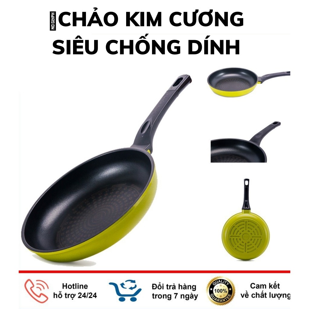 ⭐Lòng chảo phủ tinh thể kim cương: Lớp tinh thể kim cương được phủ ở trên cùng lòng chảo giúp tăng khả năng chống dính, hạn chế trầy xước gấp 5 lần chảo thường.
