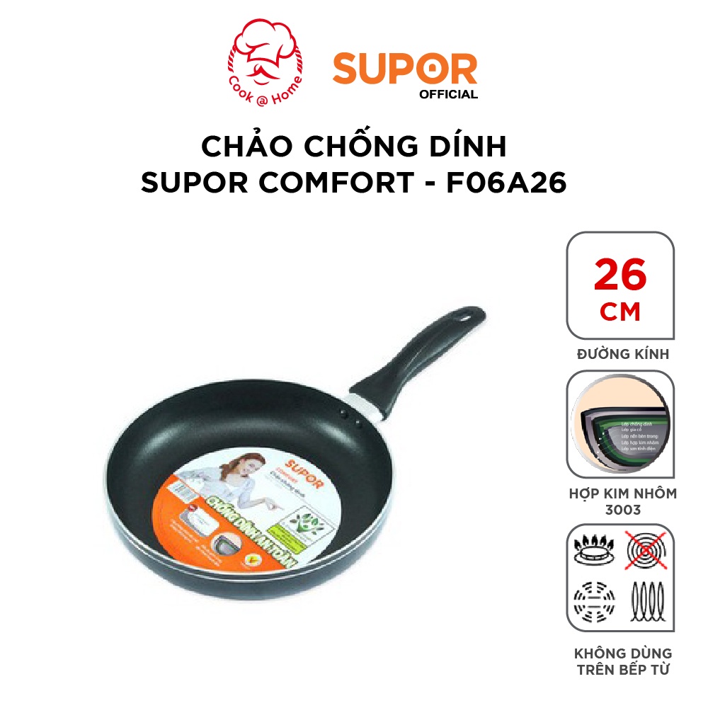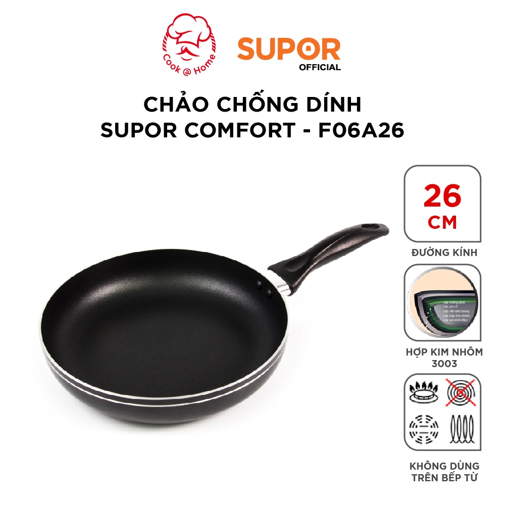 Nhà cửa & Đời sống > Dụng cụ nhà bếp > Chảo || Chảo chống dính Supor Comfort size 20, 22, 24, 26, 28, 30cm -F06A26Còn hàng