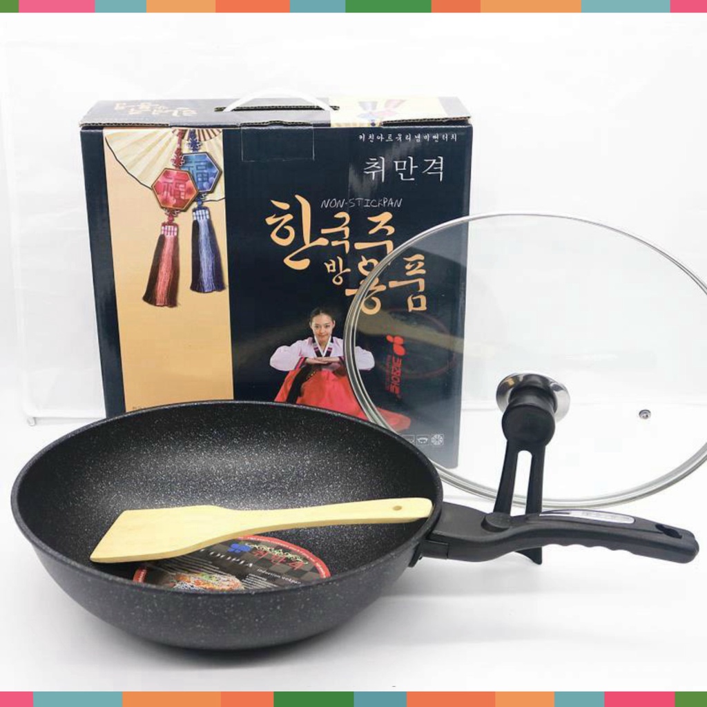 Chảo Chống Dính Vân Đá Sâu Lòng Coopia Hàn Quốc 32Cm Dùng Cho Mọi Loại Bếp - Tặng Kèm Vung Kính