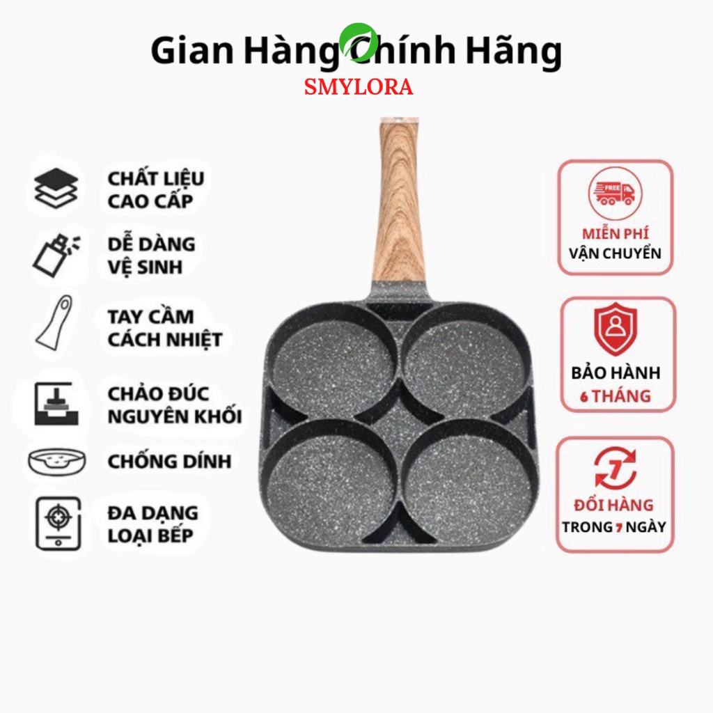 - Chảo chia sẵn 4 ô tiện dụng, 1 lúc có thể chiên rán 4 món tuỳ theo sở thích .